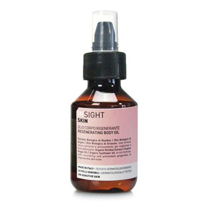 Skin Regenerating Body Oil - Regenerujący olejek do ciała. Olejki stosowane są w codziennej pielęgnacji skóry ze względu na swoje właściwości regenerujące oraz uelastyczniające skórę. Odpowiednia kompozycja olejków gwarantuje nie tylko wygładzenie i nawilżenie skóry, ale również poprawę jej kolorytu oraz ochronę przed czynnikami zewnętrznymi. Olejek do ciała InSight ze względu na zawartość liści rooibos idealnie sprawdza się w pielęgnacji skóry wrażliwej i delikatnej. Połączenie oleju arganowego oraz oleju słonecznikowego stanowi silną pielęgnacje nawilżającą skórę oraz gwarantującą jej jędrność. Dzięki zawartości witaminy E, kwasów omega 3 i 6 oraz kwasy linolowego połączenie tych dwóch olejów to duża dawka antyoksydantów. Ochrona skóry przed działaniem wolnych rodników spowalnia proces starzenia, czego efektem jest gładka i jędrna skóra. Olejki wzmacniają również płaszcz hydrolipidowy skóry, dzięki czemu można zapomnieć o przesuszeniu i ściągnięciu na dobre!
