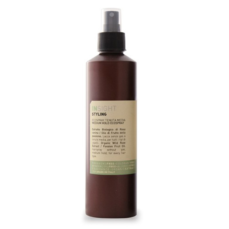 Styling Medium Hold Ecospray - Lakier do włosów bez gazu. Utrwalenie włosów bez ich sklejania! Niezwykły lakier pozwala utrzymać fryzurę przez cały dzień, a dzięki zawartości ekstraktów roślinnych pielęgnuje i chroni przed wysuszeniem. Ekstrakt z brzoskwini i granatu zapewnia włosom naturalny blask, wzmacnia ich strukturę oraz pozwala cieszyć się ich zdrowym wyglądem