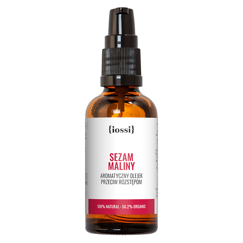 Sezam Maliny - Olejek przeciw rozstępom w ciąży. Lekki olejek o subtelnym, wprawiającym w dobry nastrój zapachu. Został przebadany dermatologicznie pod kątem pielęgnacji skóry wrażliwej. Wyselekcjonowana kompozycja olei roślinnych i olejków eterycznych składa się na kompletną pielęgnację skóry przyszłej mamy. Należą do nich m.in. olej migdałowy, z pestek malin, sezamowy i z dzikiej róży, a w gamie olejków eterycznych znalazły się mandarynka, geranium, lawenda i kadzidłowiec. Receptura tego naturalnego olejku zostałą tak stworzona, by zapobiec powstawaniu rozstępów, zredukować ich widoczność, wygładzić napiętą skórę brzucha i jednocześnie zadziałać łagodząco.