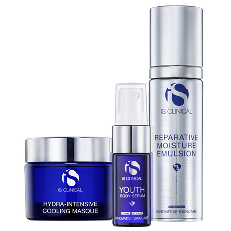 Składowa iS Clinical Youth Body Serum Nawilżające serum do ciała występuje w zestawie Youthful Hydration Collection w zmienionej objętości.