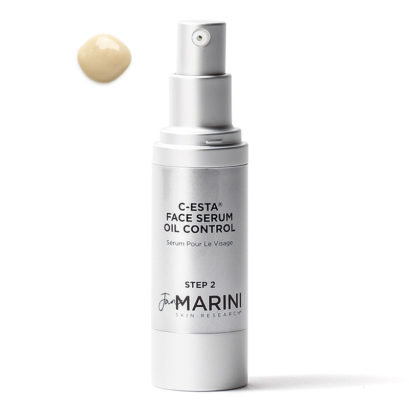 C-ESTA Face Serum Oil Control amerykańskiej marki Jan Marini to doskonały wybór dla osób z cerą tłustą i mieszaną. Konsystencja serum jest bogatsza niż w klasycznej wersji, jednak po chwili nie pozostawia tłustego filmu, co jest kluczowe dla skóry łojotokowej. Dzięki kompleksowi Oil Capture System skutecznie zapobiega nadmiernemu błyszczeniu, pozostawiając skórę odświeżoną i promienną przez cały dzień. Jednocześnie nie powoduje efektu „płaskiego matu”, zachowując naturalny blask skóry. Produkt jest bardzo wydajny. Zawartość witaminy C i DMAE nadaje mu wyjątkowe właściwości przeciwutleniające, które skutecznie chronią skórę przed przedwczesnym starzeniem i działaniem czynników zewnętrznych. Witamina C w formie palmitynianu askorbylu zapewnia stabilność i efektywność, poprawiając wygląd skóry i rozjaśniając przebarwienia. Całość wieńczy bardzo przyjemny zapach, który uprzyjemnia codzienne stosowanie.
