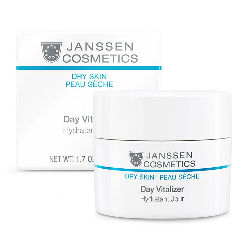 Day Vitalizer - Krem nawilżający. Aksamitny krem intensywnie nawilżający o przyjemnej konsystencji i świeżym zapachu przeznaczony dla cery suchej i normalnej z objawami odwodnienia. Preparat doskonale radzi sobie z szorstkością i łuszczeniem, tworząc na skórze delikatną, ochronną powłokę. Skóra dzięki temu ma zapewnione długotrwałe nawilżenie i komfort. Zawarty kompleks nawilżający bazujący na kwasie hialuronowym, zielonej atlantyckiej aldze Codium tomentosum, wyciągu z korzenia pustynnej rośliny Imperata cylindrica zabezpiecza skórę przed utratą wilgoci oraz rewitalizuje. Powierzchowne zmarszczki zostają spłycone, a cera staje się idealnie wygładzona i miękka.