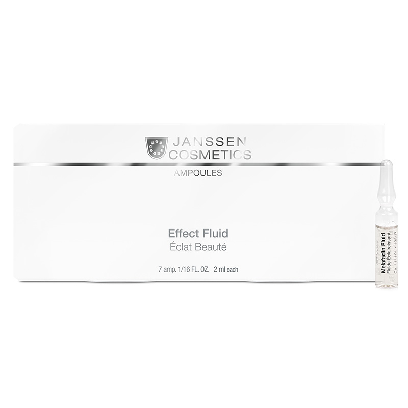 Melafadin Fluid - Ampułka rozjaśniająca przebarwienia. Aktywny koncentrat przeznaczony dla cery z zaburzeniami pigmentacji. Zawiera kwas lipoaminowy, który jest skutecznym składnikiem rozjaśniającym przebarwienia, efektywnie blokuje receptory α-MSH na powierzchni melanocytów. Dodatkowo obecna stabilizowana forma witaminy C jest przekształcana w wolną witaminę C przez natywne enzymy skóry (esterazy) i hamuje dojrzewanie melaniny. Natomiast SORR, czyli wysoce aktywny ekstrakt pochodzący z roślin Siegesbeckia orientalis i Rabdosia rubescens, zatrzymuje wchłanianie melaniny do keratynocytów, także działa na skórę łagodząco i przeciwutleniająco. Cera w rezultacie staje się promienna, rozjaśniona, a przebarwienia zostają zredukowane.