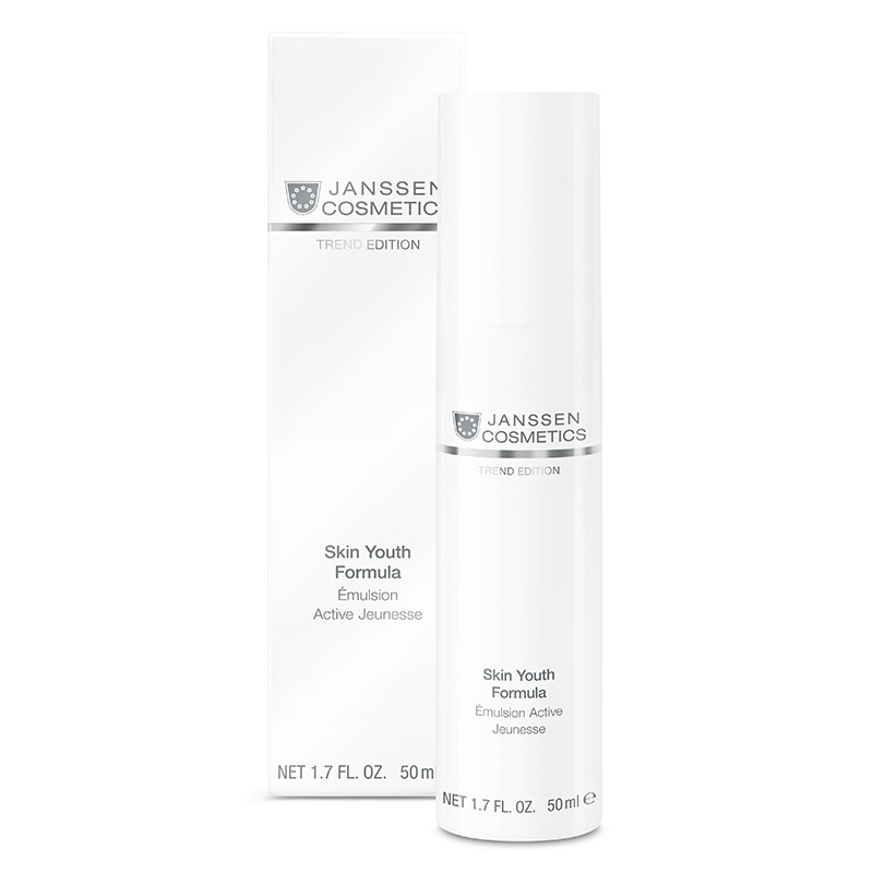 Skin Youth Formula - Emulsja rewitalizująca. Lekka, szybko wchłaniająca się emulsja z efektem matującym, której skład w 16% stanowią lipidy. Pobudzają one procesy naprawcze w naskórku, chroniąc przed przedwczesnym starzeniem. Ekstrakt z ryżu inicjuje wydzielanie sirtuin, czyli białek długowieczności. Obecność kwasu hialuronowego sprawia, że naskórek zostaje intensywnie nawilżony i zabezpieczony przed utratą wilgoci. Natomiast japoński jedwab perfekcyjnie zmiękcza i wygładza powierzchnię skóry. Dodatkowo w emulsji został zawarty drobny proszek poliamidu, który absorbuje nadmiar sebum i zostawia matowe wykończenie. Idealnie sprawdzi się jako baza pod makijaż.