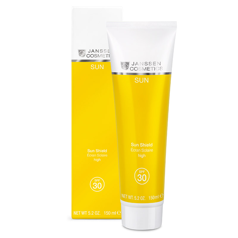 Sun Shield SPF 30 - Ochronny krem przeciwzmarszczkowy. Krem zawierający fotostabilny system filtrów ochronnych UV z substancją czynną – ektoiną, która dodatkowo pielęgnuje skórę. Preparat zapewnia długotrwałą ochronę przed szkodliwym wpływem promieni UVA i UVB, zabezpiecza przed fotostarzeniem oraz powstawaniu przebarwień. Zawarta ektoina, czyli substancja wytwarzana przez mikroorganizmy gwarantuje aktywną ochronę komórek, a także reguluje poziom wilgoci w naskórku, niwelując ryzyko suchości naskórka i powstawania zmarszczek z przesuszenia.