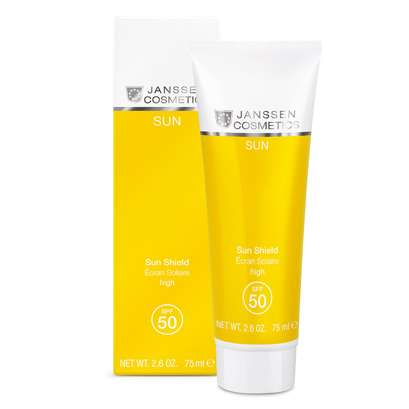 Sun Shield SPF50 - Ochronny krem przeciwsłoneczny. Produkt zapewnia maksymalną ochronę przed promieniowaniem UVA i UVB, dzięki fotostabilnemu systemowi filtrów ochronnych. Dodatkowo wzbogacony jest o substancję czynną – ektoinę. To związek wytwarzany przez mikroorganizmy, który gwarantuje aktywną ochronę komórkową przed uszkodzeniami oraz zapewnia optymalny poziom wilgoci w naskórku. Krem w rezultacie doskonale pielęgnuje naskórek i chroni przed szkodliwymi czynnikami.