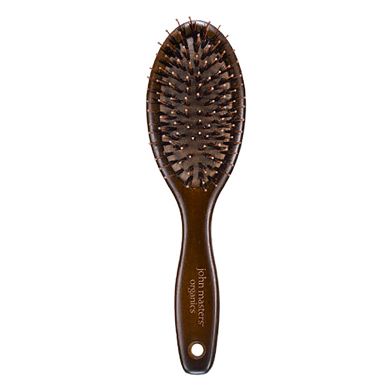 Szczotka zapewnia profesjonalną jakość stylizacji gęstych włosów, dzięki wykonaniu z optymalnie dobranych materiałów. Połączenie naturalnego włosia z dzika i włosia nasyconego jonami turmalinu zwiększa połysk oraz wygładzenie włosów, dzięki antystatycznym właściwościom włosia dzika. Gwarantuje to szybsze suszenie i lepszy efekt stylizacji. Lekka, poręczna rączka wykonana z materiałów bambusowych ułatwia posługiwanie się narzędziem.