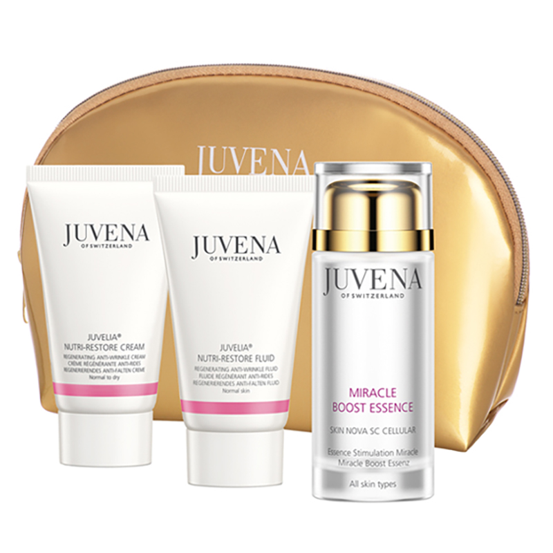 Składowa Juvena Miracle Boost Essence Esencja aktywująca występuje w zestawie Nutri Restore 50+ Set w zmienionej objętości.