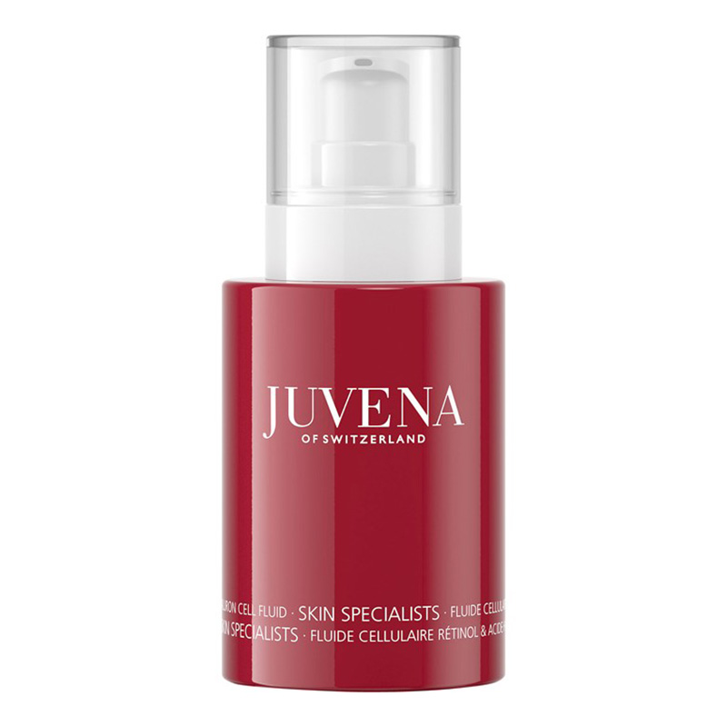 Kwas hialuronowy ma za zadanie wypełnić głębsze linie, bruzdy i zmarszczki. Wiążąc wodę w skórze przyczynia się również do właściwego poziomu jej nawilżenia. Te dwa potężne składniki aktywne o działaniu przeciwstarzeniowym w połączeniu z unikatową technologią Juvena to pewność jędrnej i młodo wyglądającej skóry. W efekcie stosowania Juvena Retinol And Hyaluron Cell Fluid skóra staje się napięta i silnie nawilżona.