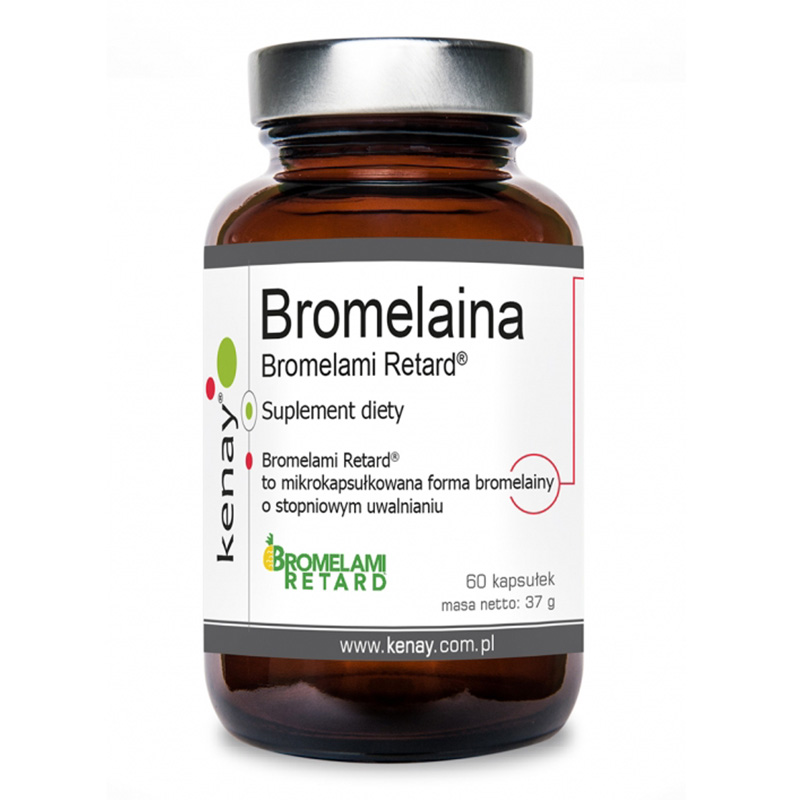 Produkt zawiera bromelainę – enzym pozyskiwany z ananasa (Ananas comosus), znany ze swojej zdolności do rozkładu białek na aminokwasy. Dzięki zastosowaniu opatentowanej technologii mikroenkapsulacji bromelaina w preparacie Bromelami Retard jest chroniona przed działaniem kwasów żołądkowych i uwalniana stopniowo w jelicie cienkim. Proces ten trwa aż do 48 godzin, co zapewnia długotrwałe działanie.