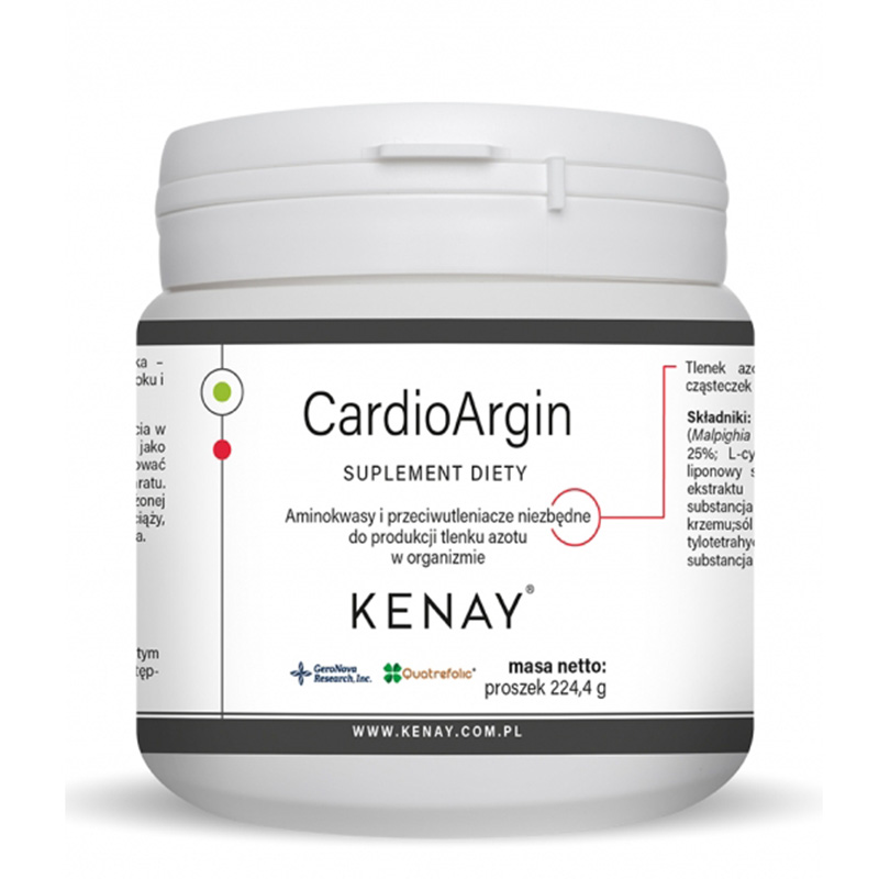 CardioArgin zawiera starannie dobrane aminokwasy, takie jak L-arginina, L-cytrulina i L-tauryna, a także witaminę C pochodzącą z aceroli, astaksantynę oraz kwas foliowy w opatentowanej formie Quatrefolic®. Formułę uzupełnia R-kwas alfa-liponowy, znany ze swoich właściwości antyoksydacyjnych, wspierających ochronę komórek przed stresem oksydacyjnym.