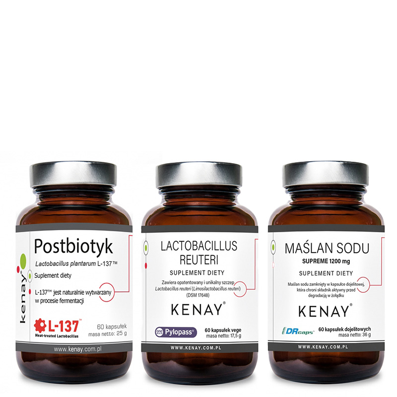 Suplement diety przeznaczony dla osób dorosłych. Formuła zawiera maślan sodu – sól sodową kwasu masłowego, który należy do grupy krótkołańcuchowych kwasów tłuszczowych (SCFA). Kwas masłowy jest naturalnie produkowany przez bakterie jelitowe w okrężnicy i stanowi podstawowy składnik odżywczy dla komórek nabłonka jelita grubego.