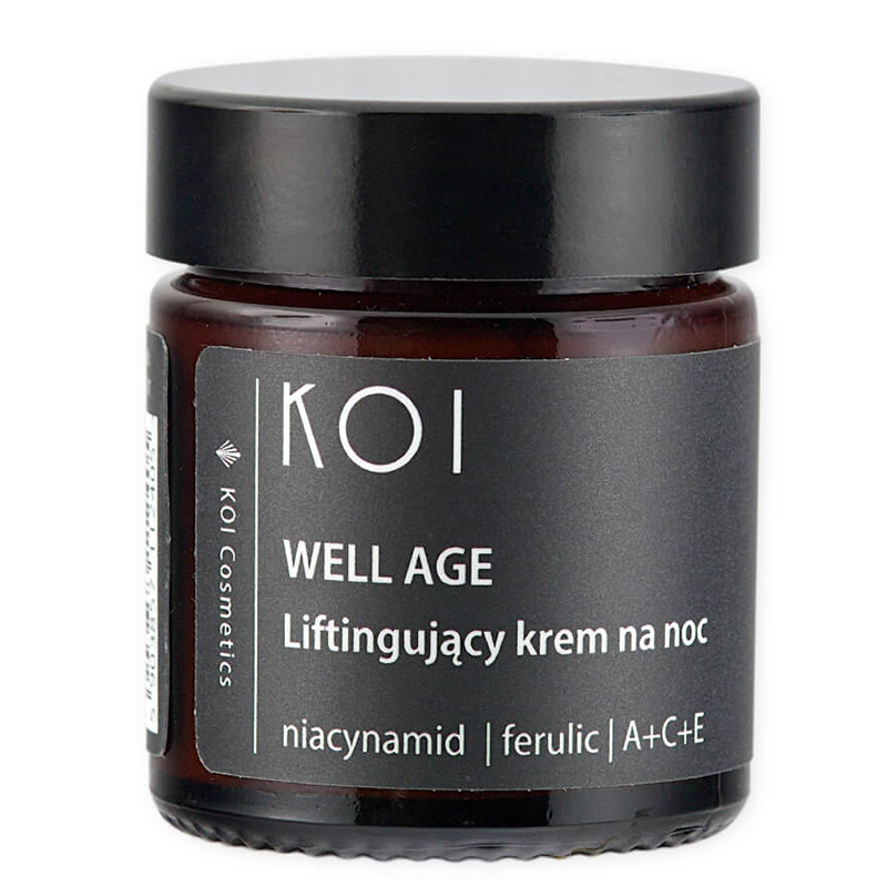 Ten Liftingujący krem na noc Niacynamid, ferulic, witaminy A+C+od KOI Cosmetics to zaawansowany dermokosmetyk, który z uwagi na wyjątkowo bogaty i synergicznie działający skład, stanowi intensywną kurację regenerującą i przeciwstarzeniową na czas nocnego wypoczynku.