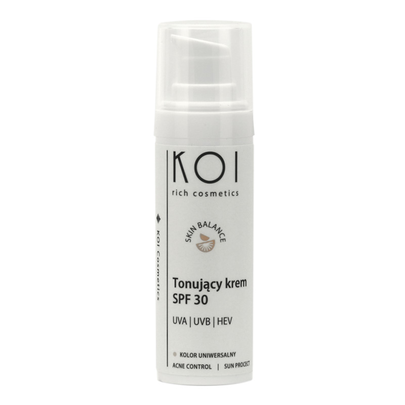 Krem KOI Skin Balance SPF 30 nie tylko chroni przed słońcem, ale też wspomaga terapię trądziku. Pozostawia matowe wykończenie i delikatnie tonuje koloryt cery.