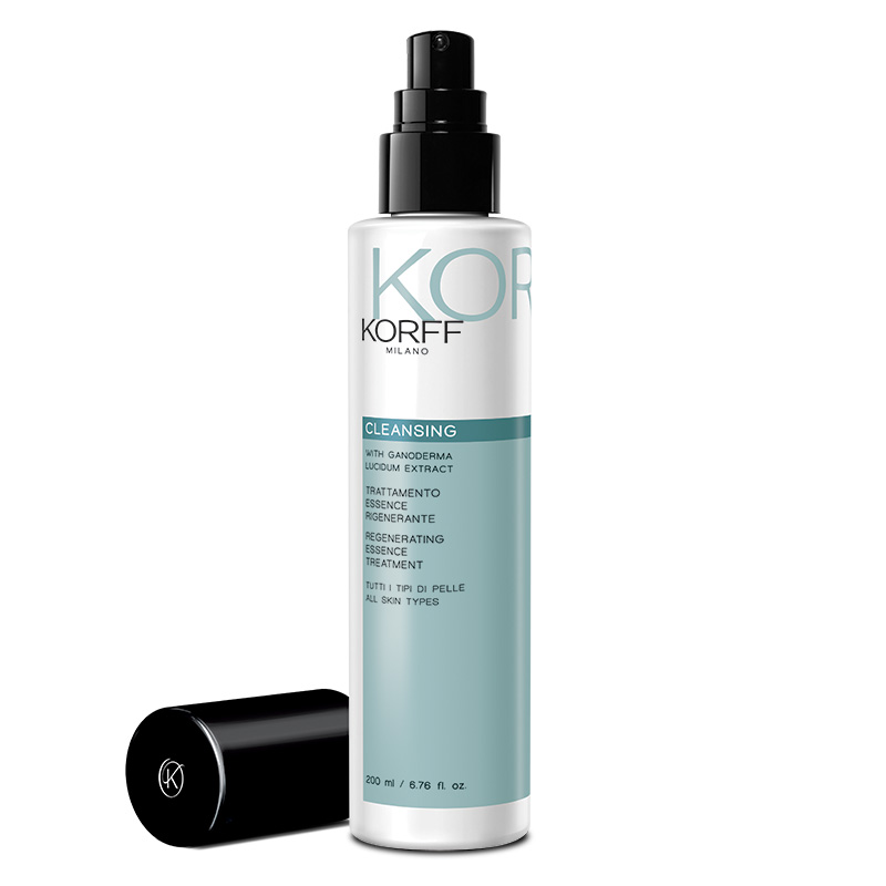 Regenerating Essence Treatment - Oczyszczająco-regenerująca esencja 200 ml. Preparat, który z powodzeniem może zastąpić tonik. Wspomaga odnowę komórkową, uwalnia z zanieczyszczeń pory skóry i przygotowuje ją do lepszego wchłaniania kosmetyków. Zawiera w sobie wyciąg z kasztana jadalnego, azjatyckich grzybków Reishi, drożdże, aloes oraz kompleks soli mineralnych. Skóra po użyciu esencji jest nawilżona, dokładnie oczyszczona i odczuwalnie odświeżona. Produkt nie zawiera alkoholu i nadaje się do każdego typu skóry.