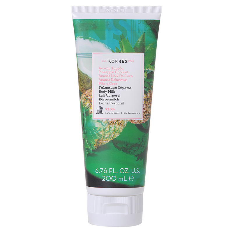 Body Milk Pineapple Coconut - Mleczko do ciała o zapachu ananasa i kokosa. Kosmetyk pielęgnacyjny, który sprawi, że podczas jego stosowania myśli odpłyną na rajską, tropikalną wyspę. To wszystko za sprawą wyjątkowej kompozycji zapachowej łączącej kremowy, otulający aromat kokosa z orzeźwiającym i soczystym ananasem. Aplikacja mleczka koi zmysły, przynosi odprężenie i relaks, w czasie gdy substancje aktywne nawilżają skórę. Olejek z migdała wzmacnia płaszcz hydrolipidowy, regeneruje, uelastycznia i wygładza skórę. Szczególnie dobrze wpływa na skóry suche i odwodnione. Z kolei aloes wykazuje silne właściwości kojące i łagodzące podrażnienia. Ze względu na zdolność wiązania wody wpływa na odpowiedni poziom nawilżenia naskórka. Dodatek prowitaminy B5 przyspiesza gojenie i odbudowuje skórę.