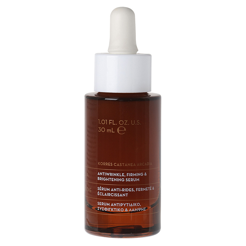 Castanea Brightening Serum - Serum do twarzy. Silnie skoncentrowane serum, z opatentowaną molekułą HALupeol, która w widoczny sposób redukuje widoczność lini, zmarszczek, ponadto wygładza skórę, poprawia jej sprężystość, jędrność oraz elastyczność. Stosowany regularnie rozjaśnia i rozświetla skórę. Kosmetyk został udoskonalony o Lupeol - czyli ekstrakt z liści kasztana jadalnego, który połączony został z kwasem hialuronowym. Takie połączenie silnie wnika w głębsze warstwy naskórka, zapewniając mu niezwykle silne odżywienie, nawilżenie oraz nawodnienie. Dodatkowo, w kosmetyku jest również heksapeptyd, czyli naturalny polipeptyd, który ma działanie ujędrniające oraz przeciwstarzeniowe.