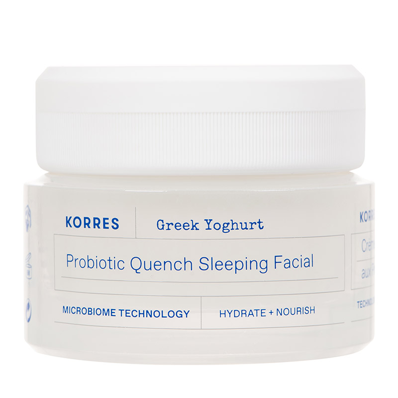 Pre i probiotyki, wyciąg z alg, jogurt grecki, olej jojoba, kwas hialuronowy.