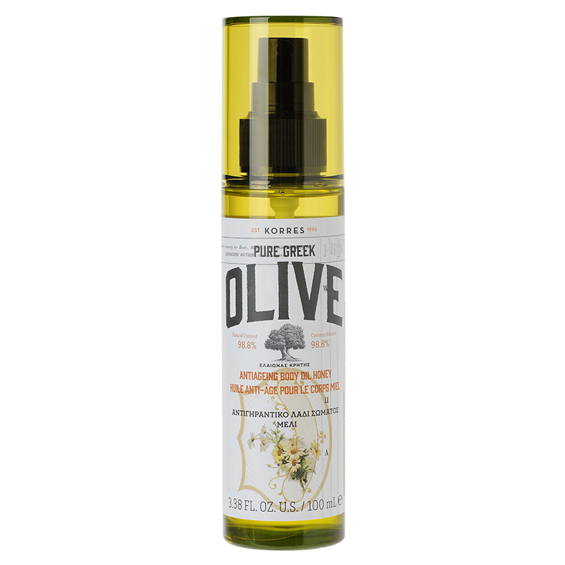 Olive Antiageing Body Oil Honey - Olejek do ciała, miód. Produkt do codziennej pielęgnacji ciała. Suchy olejek wzbogacony został o ekstrakt z oliwy ekstra virgin, który odżywia, nawilża oraz odbudowuje sprężystość i elastyczność skóry. Jego regularne stosowanie sprawia, że skóra staje się zdecydowanie gładsza, zdrowsza, świetlista i pełna naturalnego blasku. Olejek ma zapach miodu.
