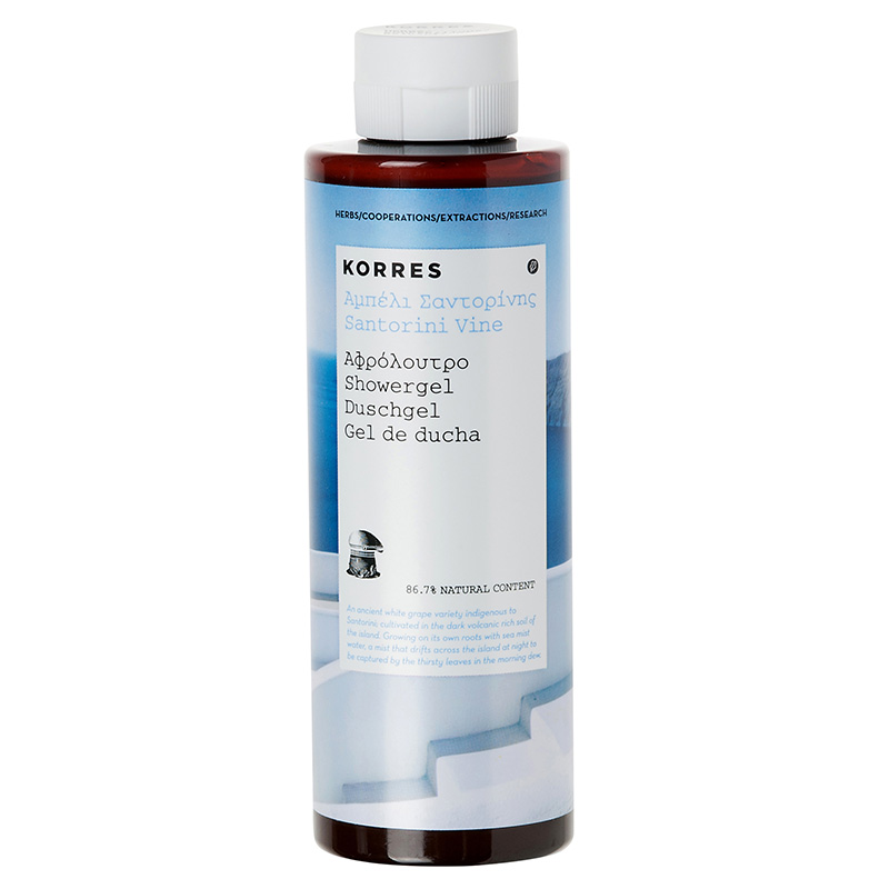 Showergel Santorini Vine - Żel pod prysznic o zapachu kwiatu winorośli z Santorini. Niezwykle delikatny, kremowy żel pod prysznic, który pachnie subtelnie kwiatem winorośli prosto z Santorini. Produkt bogaty jest między innymi w proteiny pszenicy, które tworzą na skórze ochronny film. Wzmacnia on jej naturalny poziom nawilżenia. Dodatkowo żel zawiera również aloes, bogaty w witaminy C i E, cynk oraz enzymy antyoksydacyjne, bogactwo tych składników wzmacnia system odpornościowy skóry. Ponadto pobudza on również syntezę kolagenu i elastyny w skórze, a co więcej zmniejsza widoczne oznaki starzenia się skóry.