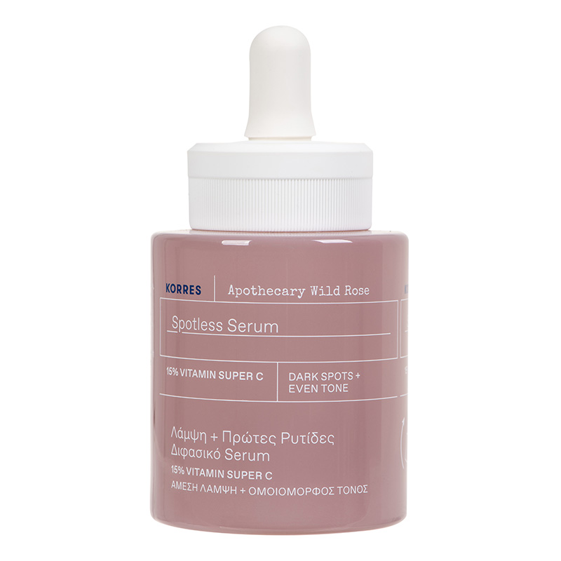 Serum zawiera stabilizowaną witaminę C, która ma potwierdzoną klinicznie skuteczność. Dodatkowo w składzie znajdziemy olejek z dzikiej róży, jest to składnik który od dawna jest stosowany w zielarskiej aptece marki Korres. Pomaga on zachować młody wygląd skóry, redukuje przedwczesne oznaki starzenia się skóry oraz sprawia, że po jego użyciu skóra staje się gładka i promienna.