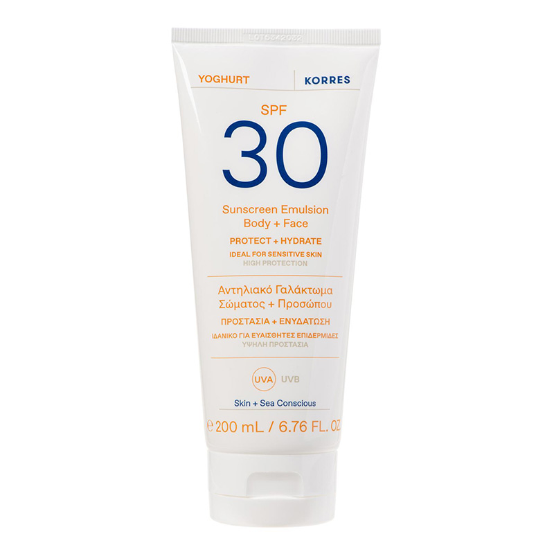 Emulsja Korres została wzbogacona o jogurt, który jest naturalnym źródłem protein, zapewniając skórze odpowiednie nawilżenie. Połączenie pantenolu i witaminy E pomaga wzmocnić barierę ochronną skóry, zapewniając jej miękkość i zdrowszy wygląd. Emulsja zawiera również bioferment szałwii muszkatołowej i bisabolol oraz ekstrakt z korzenia imbiru, bogate w przeciwutleniacze.
