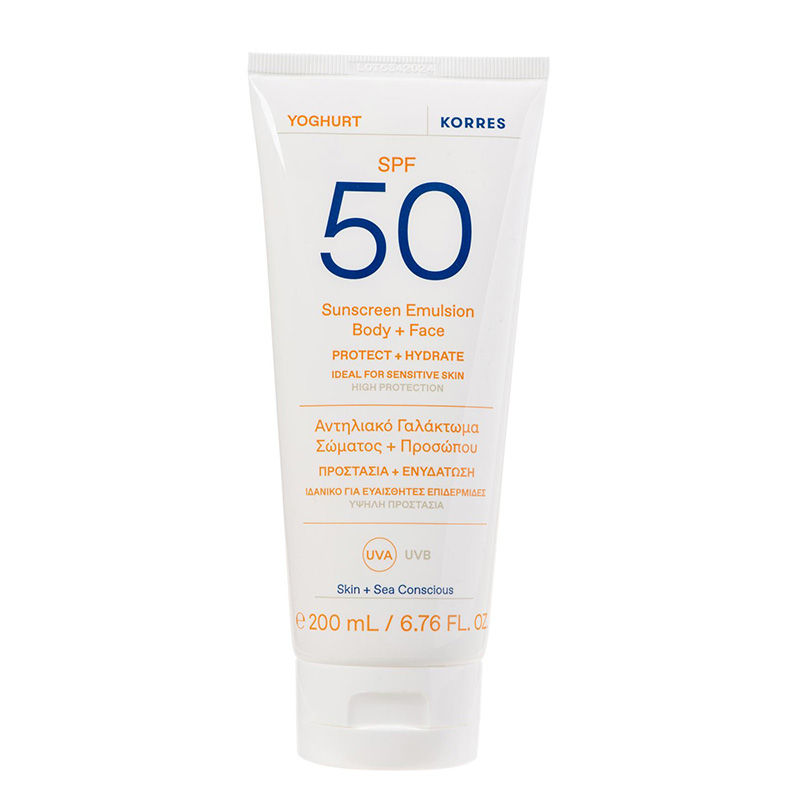Korres Sunscreen Emulsion Body + Face SPF 50 nie tylko doskonale chroni skórę przed fotostarzeniem, ale także pozostawia ją miękką, gładką i elastyczną.