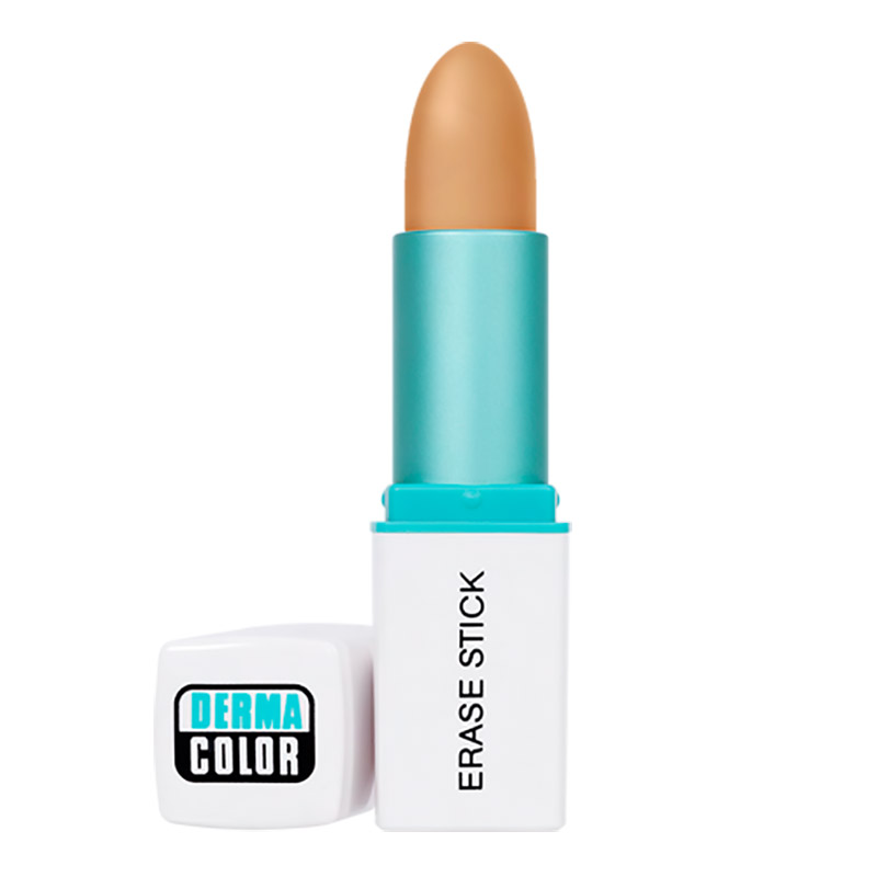 Dermacolor Camouflage Creme Erase Stick - Kamuflaż (kolor D4). Bardzo wygodny kamuflaż w formie sztyftu, do punktowego stosowania. Preparat charakteryzuje się wysokim stopniem napigmentowania, co gwarantuje pokrycie nieestetycznych niedoskonałości, takich jak przebarwienia, odbarwienia, blizny itp. Sztyft poradzi sobie również z przykryciem tatuażu. Idealny dla osób chorych na bielactwo. W celu uzyskania jak bardziej trwałego efektu zaleca się użycie Fixing Powder lub/i Fixing Spray, które sprawią, że makijaż stanie się wodoodporny oraz będzie ochraniał skórę przed promieniowaniem UV. Takie wykończenie makijażu pozwoli również zwiększyć odporność na ścieranie oraz pot. Prawidłowe użycie kamuflażu oraz zastosowanie się do instrukcji n.t. aplikacji pozwoli na utrzymanie się produktu nawet do 36 godzin. Duży wybór kolorystyczny gwarantuje dobranie odpowiedniego odcienia do każdej karnacji. Kolory można ze sobą mieszać w celu uzyskania idealnego efektu. W celu uzyskania jak najlepszego rezultatu produkt przed aplikacją należy rozgrzać rozcierając na wierzchu dłoni.