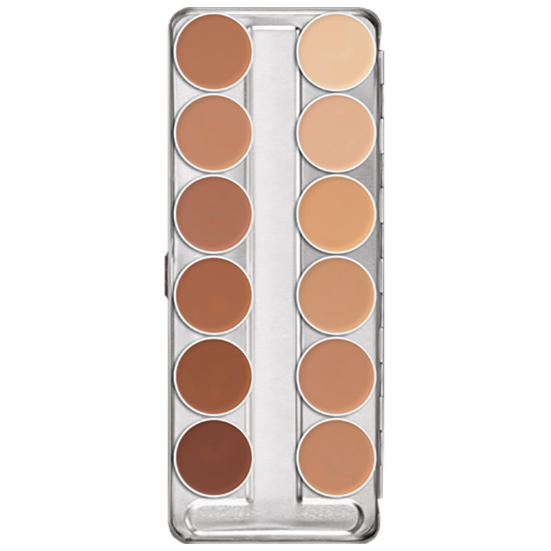 Dermacolor Camouflage Creme - Paleta 12 kol. kamuflaży (kolor D1W-D12W). Profesjonalna paletka do kamuflowania wszelkich niedoskonałości na skórze. Idealnie sprawdzi się w przypadku przebarwień, odbarwień skórnych np. w przebiegu bielactwa, w wyniku starzenia się skóry. Skutecznie zakrywa tatuaże, blizny, naczynka, żylaki itp. Produkt jest mocno napigmentowany dlatego już niewielka ilość preparatu wystarczy aby zakryć niedoskonałości. Produkt jest bardzo wydajny. W zwiększeniu trwałości produktu pomoże wykończenie makijażu pudrem Fixing Powder i utrwalaczem Fixing Spray. Dzięki temu makijaż stanie się wodoodporny oraz będzie bardziej odporny na ścieranie. Użycie tych produktów gwarantuje również ochronę przed promieniowaniem słonecznym. Produkt zaaplikowany oraz utrwalony zgodnie z zaleceniami utrzymuje się na skórze nawet do 36 godzin. Dzięki obecności dwunastu różnych odcieni kamuflażu można uzyskać kolor dopasowany do prawie każdej karnacji, za pomocą mieszania kolorów. W celu jak najlepszej aplikacji oraz uzyskania perfekcyjnego wyglądu warto rozgrzać produkt na grzbiecie dłoni, co pozwoli na lepsze stopienie się go ze skórą.