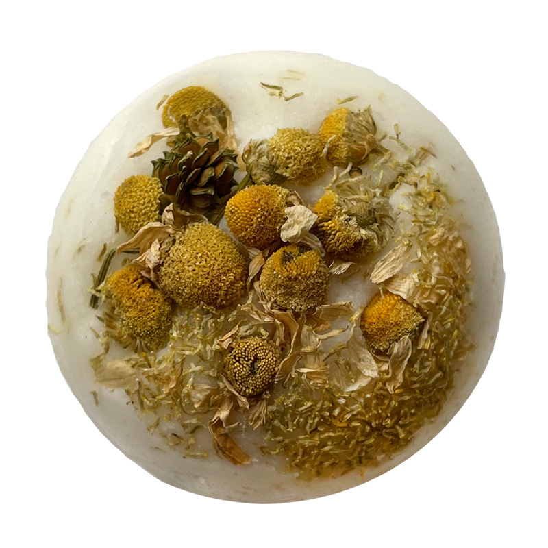 Bazę kosmetyku stanowi naturalne masło kakaowe, masło shea oraz olej ze słodkich migdałów. Dzięki nim kula wykazuje właściwości nawilżające, regenerujące i odżywcze. Dodatek suszonych kwiatów rumianku stanowi naturalne źródło witaminy C, dzięki czemu niweluje szkodliwe działanie wolnych rodników tlenowych. Rumianek wykazuje również działanie łagodzące, kojące oraz uspokajające zmysły.