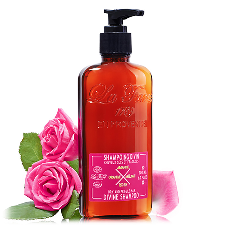 Divine Shampoo- Szampon nawilżający. Produkt przeznaczony do pielęgnacji włosów suchych, szorstkich, pozbawionych blasku, łamliwych. Stanowi doskonałą pielęgnację wzmacniającą, a przy tym przepięknie pachnie cytrusowo- różanym zapachem, dając uczucie odprężenia i relaksu. Zawiera wodę z róży damasceńskiej która nawilża włosy i wzmacnia je od nasady aż po same końce, ponadto działa stymulująco na porost włosów. Hydrolizowane proteiny migdału wypełniają ubytki we włosie, czyniąc go bardziej elastycznym i odpornym na kruszenie. Ponadto chronią włos przed szkodliwością czynników zewnętrznych. Woda z melisy lekarskiej dostarcza włosom niezbędnych witamin i minerałów a woda z kwiatu neroli odpowiada za niesamowity zapach szamponu oraz nadaje włosom blask. W efekcie włosy stają się miękkie, elastyczne i jedwabiście gładkie.