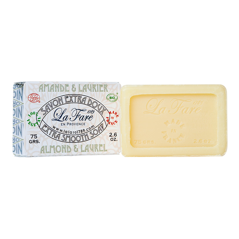 Extra Smooth Soap Almond Laurel - Delikatne mydło. Mydło w 100% ekologiczne przeznaczone do pielęgnacji skóry suchej i wrażliwej. Dzięki zawartości oleju ze słodkich migdałów i laurowego działa tonująco, nawilżająco. Bardzo silnie nawilża skórę, zapewnia jej doskonałą miękkość i elastyczność.