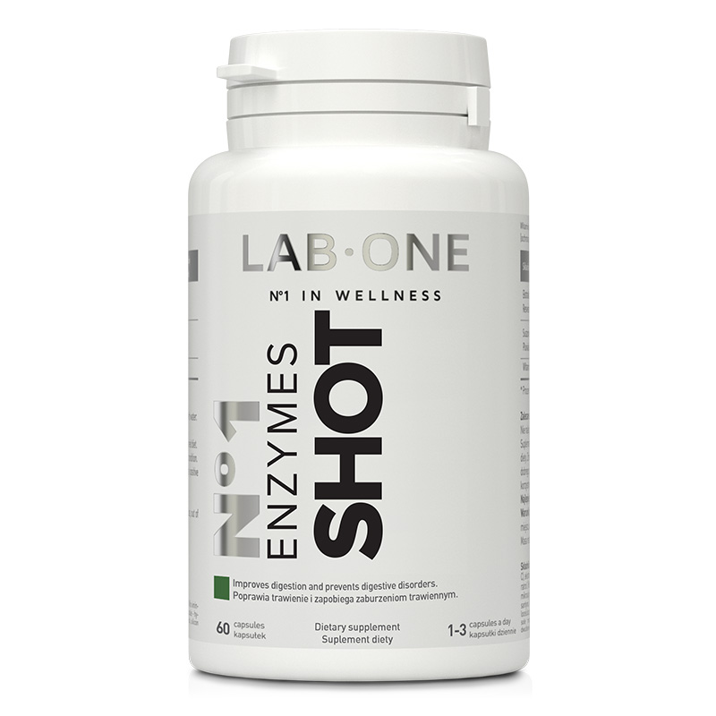 Produkt N°1 Enzymes Shot stanowi uzupełnienie diety w enzymy trawienne naturalnie występujące w organizmie człowieka.