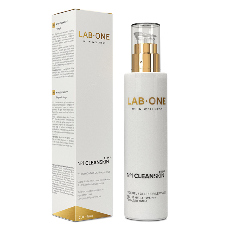 No1 Cleanskin step 1 - Żel do mycia twarzy. Dokładne oczyszczenie twarzy, to podstawa pielęgnacji każdej skóry, a w szczególności cery trądzikowej, tłustej i skłonnej do powstawania wykwitów ropnych. Odpowiedni preparat do mycia twarzy powinien być łagodny a zarazem skutecznie usuwać resztki makijażu, sebum i zanieczyszczenia zewnętrzne. N°1 CleanSkin step 1 przeznaczony jest do skóry tłustej, mieszanej i z występującymi zmianami trądzikowymi. Przystosowany do codziennego oczyszczania, działa łagodnie i nie narusza bariery ochronnej naskórka. Idealnie przygotowuję skórę do dalszych etapów codziennej pielęgnacji. Doskonale reguluje wydzielanie łoju, usuwa niedoskonałości oraz redukuje ilość zaskórników. Działanie antybakteryjne wspomaga walkę z trądzikiem i stanami zapalnymi. Żel zawiera Wyciąg z Jeżówki Purpurowej i Zielonej Herbaty oraz Acnacidol, które wykazują działanie przeciwbakteryjne, przeciwzapalne oraz seboregulujące. Dodatkowo łagodzą podrażnienia i koją zaognioną skórę. Produkt pozostawia skórę idealnie oczyszczoną, gładką i uspokojoną.