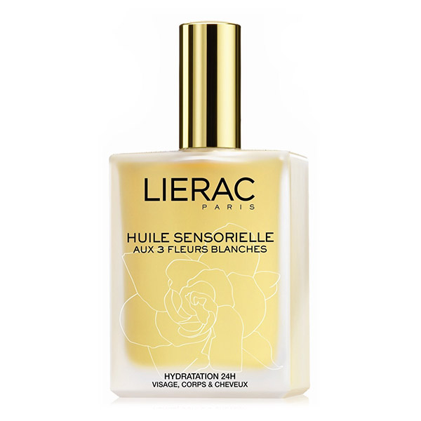 Huile Sensorielle - Zmysłowy olejek z 3 kwiatami do skóry i włosów. Olejek o wszechstronnym działaniu, doskonale pielęgnuje skórę oraz włosy. Zawiera połączenie najlepszych olejków roślinnych oraz białych kwiatów, które przynoszą odpowiednią dawkę odżywienia, regeneracji i nawilżenia. Luksusowa forma olejku posiada piękny, zmysłowy zapach oraz lekką, nietłustą konsystencję. Bardzo szybko się wchłania, nie pozostawiając tłustej warstwy. Produkt zawiera aż 14% stężenie olejków roślinnych: arganowy, z pestek winogron, ze słodkich migdałów, z orzechów laskowych. Dostarczają one skórze NNKT, witamin oraz flawonoidów, dzięki którym skóra i włosy są chronione przed niekorzystnym wpływem czynników zewnętrznych oraz poprawia się ich ogólna kondycja. Olejek zapewnia 24h nawilżenie. Formuła produktu zawiera również wyciąg z Gardenii, Kamelii, Jaśminu, które doskonale regenerują, chronią skórę oraz działają antyoksydacyjnie. Mają one również właściwości relaksujące umysł i ciało. Włosy stają się bardzo miękkie, wygładzone i pełne blasku, a skóra odzyskuje odpowiedni poziom nawilżenia i odżywienia.