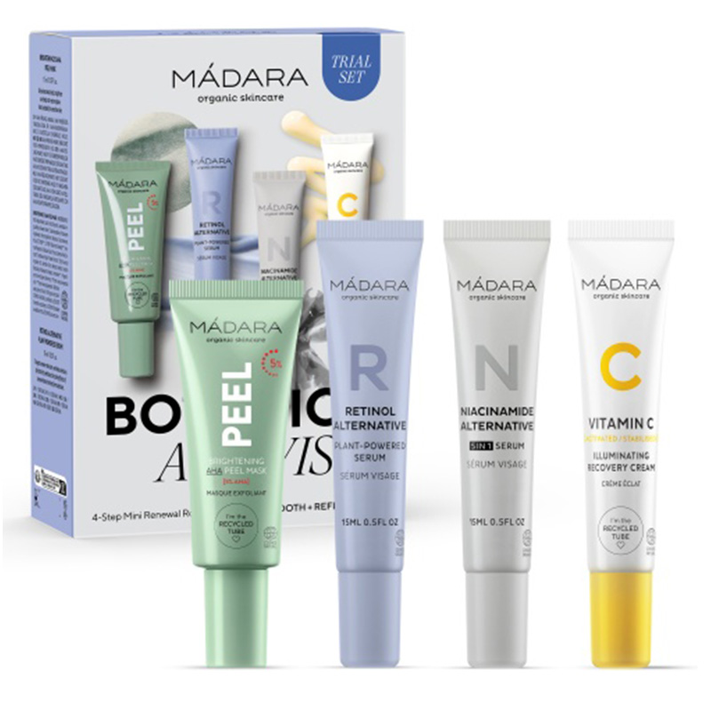 Składowa Madara Brightening AHA Peel Mask Aktywna, rozjaśniająco peelingująca maseczka występuje w zestawie Botanic Activist w zmienionej objętości.