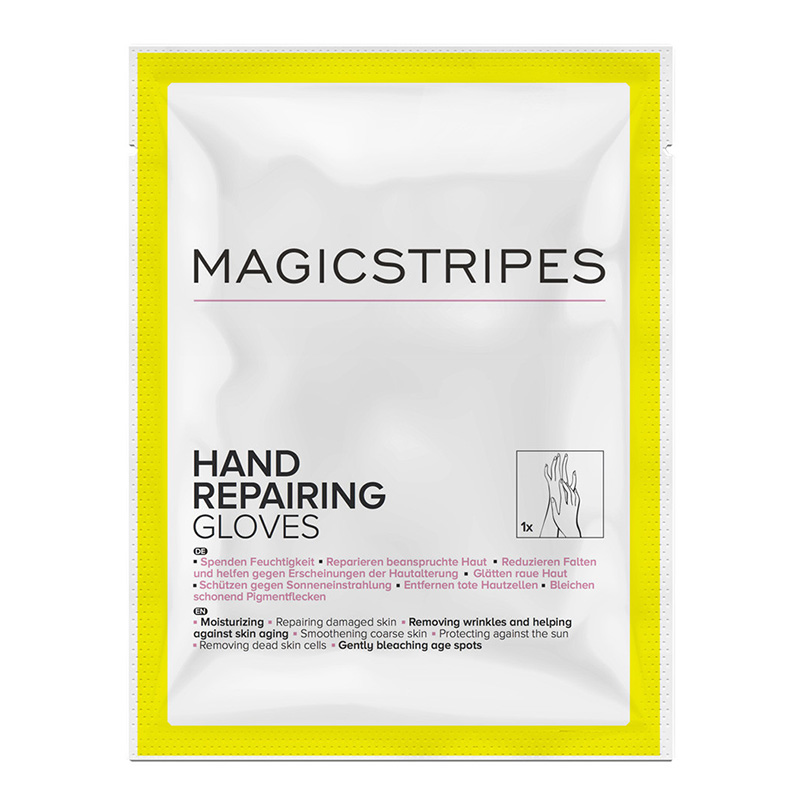 Hand Repairing Gloves - Rękawiczki regenerujące dłonie. Produkt przeznaczony do pielęgnacji dłoni, szczególnie objętych problemem suchości i nierównomiernego kolorytu. Każda rękawica nasączona jest bogatą esencją składników aktywnych o działaniu nawilżającym i regenerującym skórę. Zawiera w swoim składzie m.in. masło shea które odżywia skórę i łagodzi podrażnienia, oliwę z oliwek opóźniającą procesy starzenia skóry. Witamina C i E chronią skórę przed szkodliwością czynników zewnętrznych oraz wykazują bardzo silne działanie antyoksydacyjne. Kolagen przywraca optymalny poziom nawilżenia i wygładza zmarszczki. Witamina C jednocześnie delikatnie rozjaśnia koloryt skóry sprawiając, iż zyskuje ona bardziej promienny, młody wygląd.