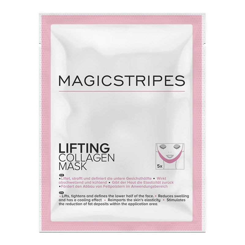 Lifting Collagen Mask - Liftingująca maseczka kolagenowa. Produkt przeznaczony do pielęgnacji każdego typu skóry, szczególnie dojrzałej, wymagającej liftingu i wzmocnienia owalu twarzy. Maska posiada w swoim składzie silnie skoncentrowaną esencję składników aktywnych takich jak: kofeina, kolagen, witamina C i E oraz oleje i wyciąg z orzechów makadamia. Tak dobrane składniki powodują, iż kontur twarzy wyraźnie napina się, staje się bardziej uniesiony i zwarty. Kolagen w składzie powoduje, iż drobne zmarszczki rozprostowują się i wygładza się powierzchnia skory. Kofeina pobudza mikrocyrkulację oraz rozbija złogi w tkance tłuszczowej. Witamina C wraz z witaminą E wykazują bardzo silne działanie przeciwutleniające, chroniąc skórę przed wolnymi rodnikami i przedwczesnym starzeniem. Maska poza bogatą esencją wykazuje działanie liftingujące - obejmując policzki, szczękę i podbródek napina i masuje dolne partie twarzy jak w przypadku masażu chłodzącego. To wszytko powoduje, iż skóra twarzy zyskuje nową, bardziej zwartą strukturę i wzmocniony owal twarzy.