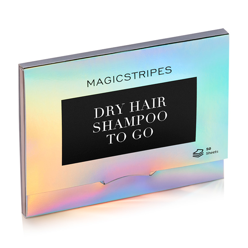 Magicstripes Dry Shampoo "To Go" - Suchy szampon "To Go". Preparat pozwala zachować świeży i czysty wygląd włosów na dłuższy czas! Suchy szampon stworzony został na bazie bibułek z papieru ryżowego, które pokryte zostały specjalnie opracowanym pudrem ryżowym, który pochłania nadmiar sebum i błyskawicznie odświeża wygląd fryzury. Idealny po treningu, całym dniu pracy czy w podróży - zawsze wtedy kiedy chcesz czuć się pięknie i świeżo. Szampon został wyprodukowany bez udziału aerozolu, dzięki czemu dba nie tylko o zdrowie i dobry wygląd skóry głowy ale także nie przynosi negatywnych wpływów dla środowiska.