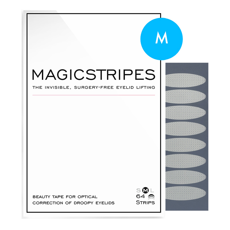 Magicstripes M - Niewidoczne paski liftingujące powieki. Produkt przeznaczony do korekcji wiotkości skóry powiek. Przyjazne dla skóry silikonowe płatki unoszą natychmiast powieki pozwalając uzyskać świeży, młodszy wygląd w zaledwie kilka sekund. Pomysł na płatki powstał dzięki światowej sławy wizażystce gwiazd Natalie Franz i błyskawicznie stał się fenomenem stanowiącym odpowiedz na problem wiotkości zarówno dla kobiet jak i dla mężczyzn. Płatki są transparentne, praktycznie niewyczuwalne na skórze, nadają się idealnie pod makijaż. Produkt jest bardzo łatwy w aplikacji, utrzymuje się na skórze przez cały dzień.