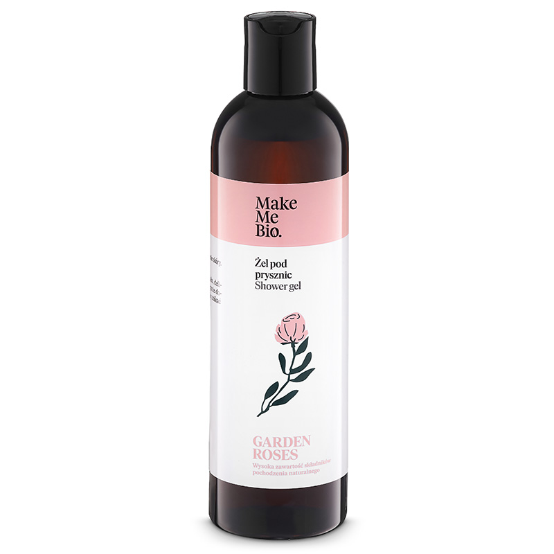 Garden Roses Gel - Delikatny żel pod prysznic z wodą różaną i olejkami. Żel myjący Make Me Bio o delikatnym, różanym zapachu to produkt o doskonałych właściwościach. Delikatne środki myjące wykorzystane w składzie tego produktu nie naruszają bariery lipidowej skóry, zapewniając jej tym samym komfort oraz zapobiegając przesuszeniu. Naturalny składnik oczyszczający czyli Aktinidia chińska delikatnie i jednocześnie skutecznie oczyszcza skórę i działa jak delikatny peeling. Składniki odżywcze zawarte w żelu charakteryzują się właściwościami nawilżającymi oraz regenerującymi skórę. Woda różana działa łagodząco- goi stany zapalne oraz podrażnienia. Olej makadamia razem z ekstraktem z kokosa silnie nawilżają skórę oraz pozwalają jej zachować równowagę. Masło mango wzmacnia działanie łagodzące produktu oraz doskonale zmiękcza skórę. Żel pod prysznic Make Me Bio to doskonały wybór dla każdego- również dla posiadaczy skóry wrażliwej i suchej!