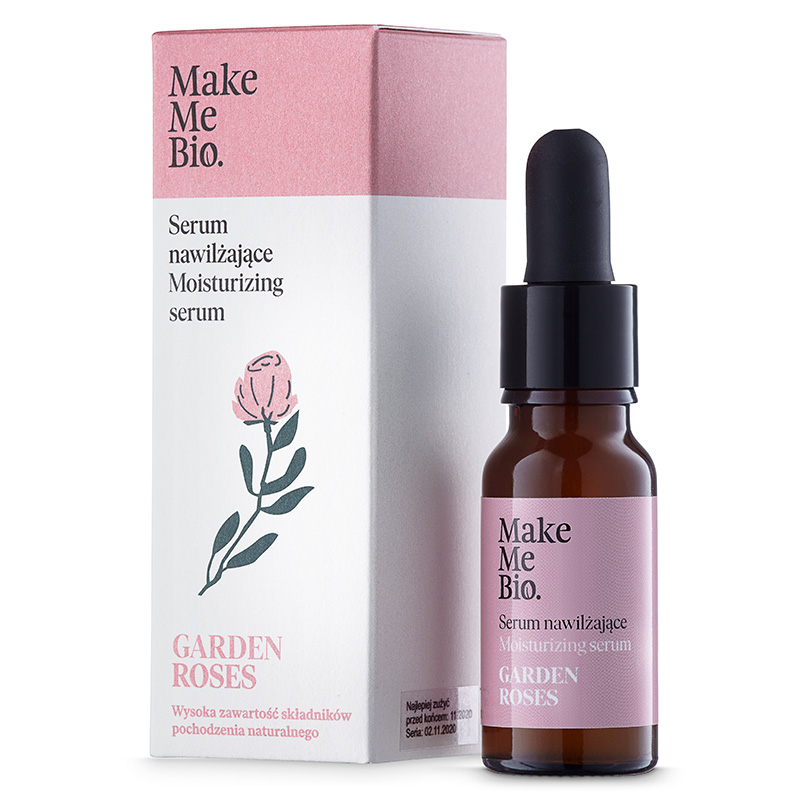 Nawilżające serum to produkt, który sprawdzi się w pielęgnacji skóry suchej i wrażliwej. Główny składnik- woda różana pozyskiwana z płatków róży doskonale łagodzi skórę oraz przywraca jej równowagę. Kwas hialuronowy ze względu na swoje właściwości utrzymuje odpowiedni poziom nawilżenia skóry. Jego cząsteczki wiążą wodę w skórze, zapewniając skórze nawilżenie i jędrność. Sok z aloesu również charakteryzuje się właściwościami nawilżającymi oraz łagodzącymi.