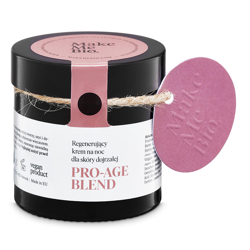 Krem o właściwościach silnie regenerujących sprawdzi się dla skóry dojrzałej oraz starzejącej się. Głównym zadaniem kremu Pro-Age Blend jest przywrócenie skórze jej naturalnych funkcji oraz zapewnienie komfortu przez długie godziny. Składniki takie jak oleje z kiełków pszenicy i wiesiołka doskonale nawilżają skórę oraz chronią przed szkodliwym działaniem czynników zewnętrznych.