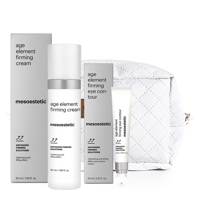 Opakowanie posiada chłodzący ceramiczny aplikator, który umożliwia wykonanie masażu redukującego cienie i obrzęki. W wyniku regularnego stosowania Mesoestetic Age Element Firming Eye Contour skóra staje się bardziej jędrna, zmarszczki wygładzone, a zmiany pigmentacyjne zniwelowane. Kosmetyk jest bezzapachowy.