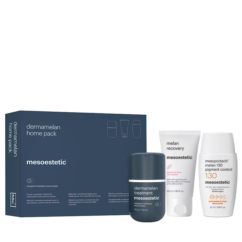 Podczas kuracji Dermamelan wskazane jest stosowanie kremu Melan Recovery 3 razy dziennie oraz aplikacja kremu z filtrem Mesoprotech Melan 130 Pigment Control w ciągu dnia.
