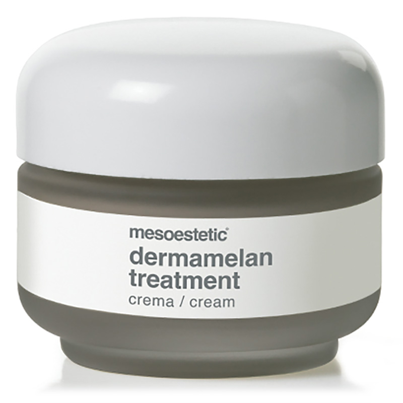 Dermamelan - Krem na przebarwienia. Preparat rekomendowany jest dla każdego typu skóry, z wyjątkiem bardzo wrażliwej. Przeznaczony do użytku po zabiegu Dermamelan jako pielęgnacja rozjaśniająca. Dermamelan jest intensywniejszą wersją Cosmelanu 2. Skutecznie walczy z przebarwieniami na twarzy i innych partiach ciała oraz wyrównuje koloryt cery, dzięki selektywnie dobranym składnikom rozjaśniającym. Skład produktu opiera się na najlepiej znanych i najbardziej efektywnych czynnikach rozjaśniających, takich jak: kwas kojowy, azelainowy, arbutyna. W połączeniu tworzą pielęgnację wspomagającą redukcję przebarwień. Krem posiada również działanie anti-aging oraz przeciwtrądzikowe i zwężające pory. Witaminy A, C i E rewitalizują skórę oraz neutralizują wolne rodniki, odpowiedzialne za starzenie się skóry. Może być stosowany o każdej porze roku, z zastosowaną ochroną UV. Po kuracji cera zyskuje bardziej równomierny koloryt i promienny blask.