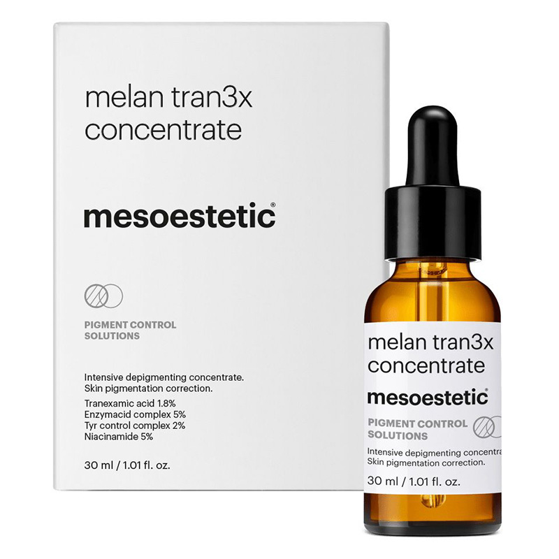 Tak niezwykle silne bogactwo składników aktywnych przyczynia się do znacznej redukcji oznak fotostarzenia, przebarwień pozapalnych i posłonecznych. Wzmacnia efekty terapii zabiegowych. Mesoestetic Melan Tran3x New sprawia, iż skóra odzyskuje jednolity koloryt i zdrowy wygląd.