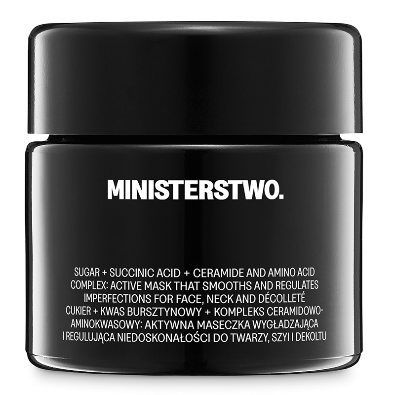 Kluczowym składnikiem maski jest kwas bursztynowy, który wykazuje działanie złuszczające oraz przeciwbakteryjne, dlatego idealnie sprawdzi się dla cer z niedoskonałościami. Glukonolakton uzupełnia recepturę nawilżając naskórek, wygładzając go i wyrównując koloryt. Ceramid NS sprawdzi się w celu odbudowania bariery naskórkowej, uzupełnienia jej lipidów, a alantoina łagodzi skutki zaburzeń tej bariery.