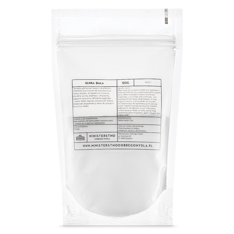 Glinka Biała sprawia, że skóra jest wygładzona i gotowa do dalszych zabiegów pielęgnacyjnych.