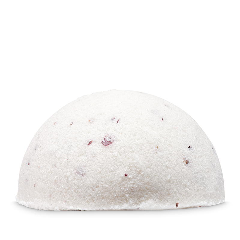 W półkuli zawarto różową glinkę francuską, olejek geraniowy, drobno posiekane płatki róży i olej z dzikiej róży. Formuła została wzbogacona również o nierafinowane masło shea, olej ze słodkich migdałów, olej z pestek winogron, olej ryżowy oraz pełne mleko, które wykazują działanie regenerujące, nawilżające i odżywcze, dzięki czemu przywracają komfort przesuszonej skórze i chronią ją przed niekorzystnym wpływem czynników zewnętrznych.